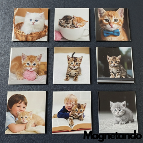 Torne seus momentos preciosos inesquecíveis com os nossos ímanes de fotos personalizados. Casamentos, nascimentos, viagens inesquecíveis ou eventos corporativos: este formato clássico de 50mm x 50mm é ideal para criar uma galeria de memórias no seu frigorífico ou painel.